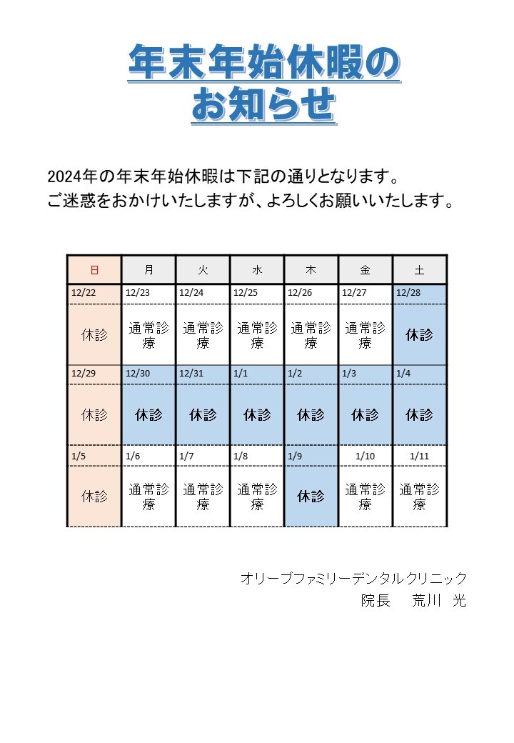 年末年始休診日のお知らせ[続きを見る]
