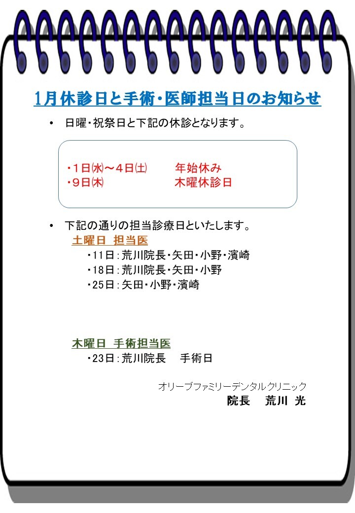 1月休診日と手術・医師担当日のお知らせ[続きを見る]