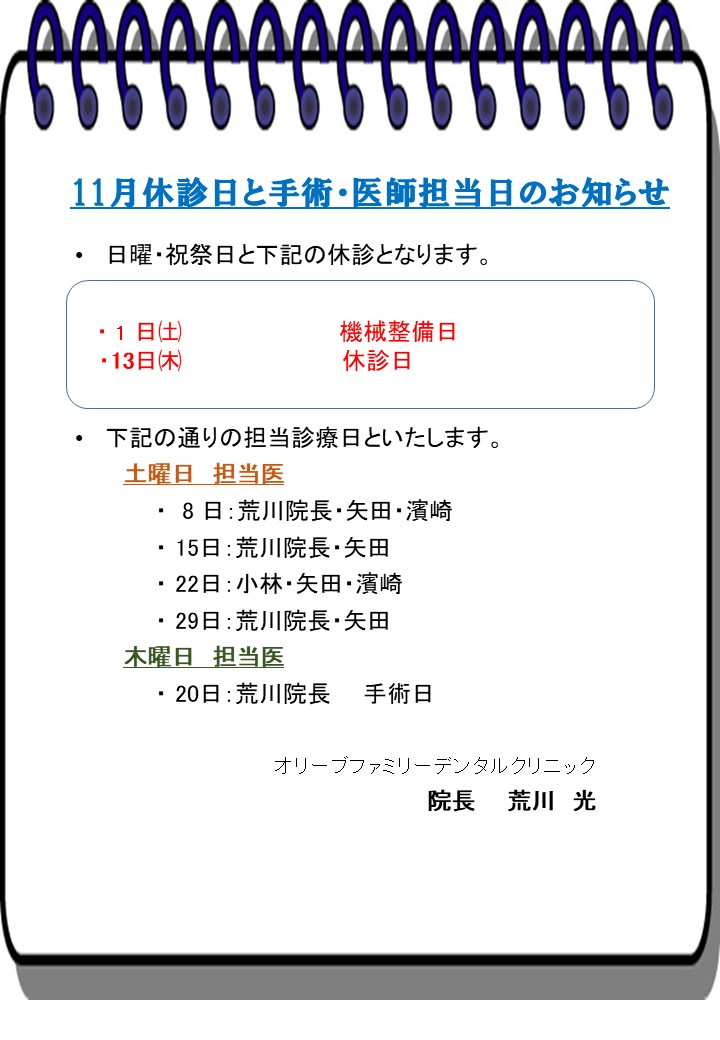 11月休診日と手術・医師担当日のお知らせ[続きを見る]